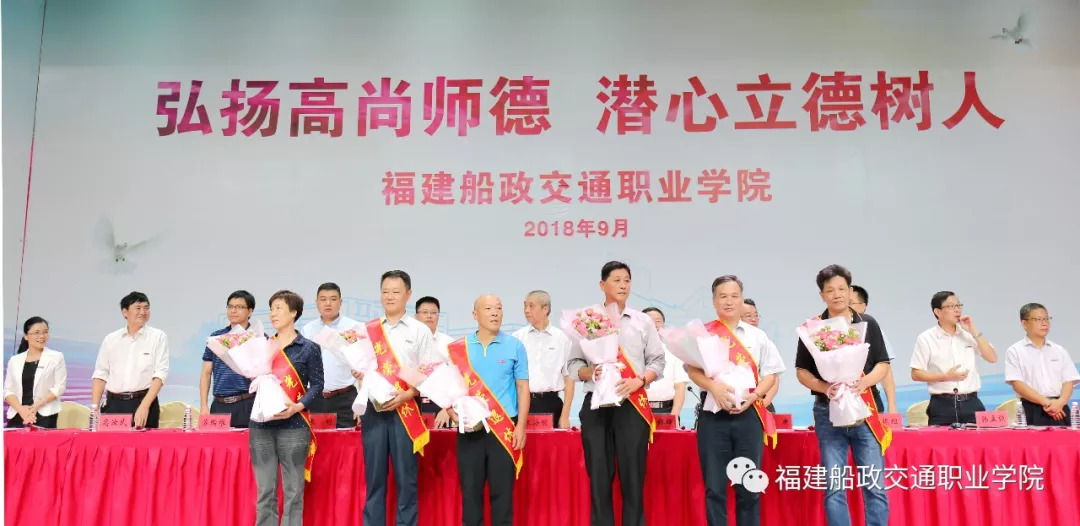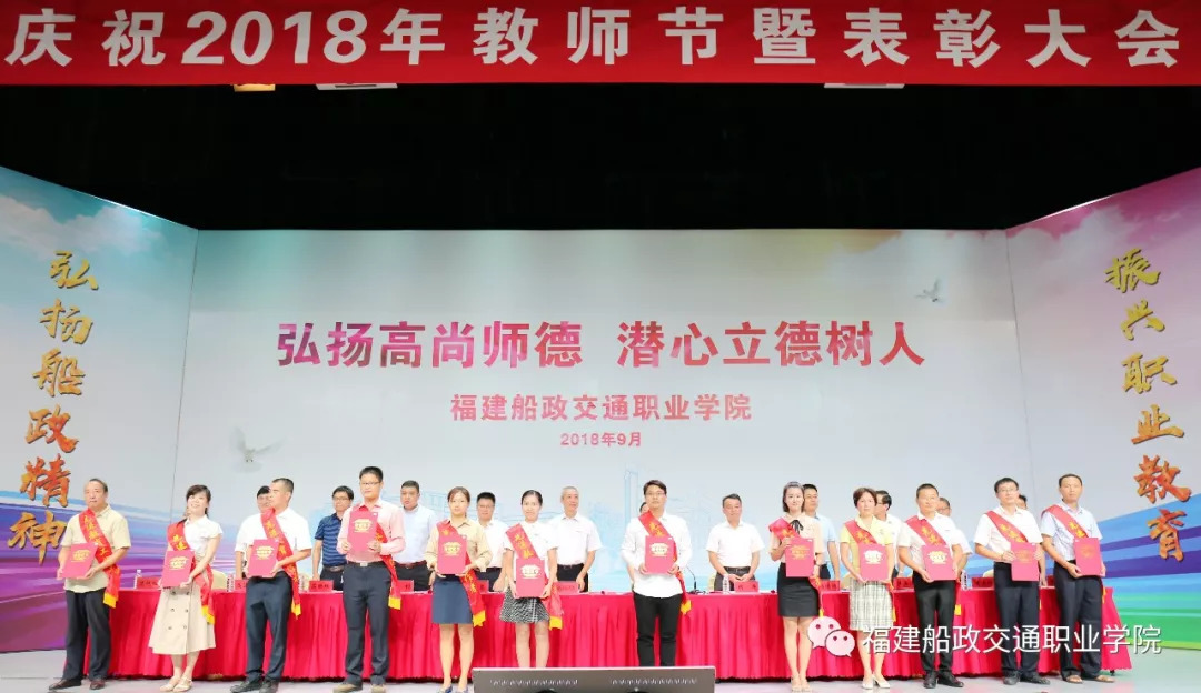 弘揚(yáng)高尚師德,潛心立德樹人。9月10日下午,福建船政交通職業(yè)學(xué)院慶祝2018年教師節(jié)暨表彰大會(huì)在文體中心隆重舉行。省教育廳職成處處長(zhǎng)張文東、教師工作處處長(zhǎng)楊振坦,省經(jīng)信委技術(shù)進(jìn)步處處長(zhǎng)陳庚,省交通運(yùn)輸廳科教處處長(zhǎng)張利,教育團(tuán)工委書記蘇貽堆,學(xué)院黨委書記張海明,學(xué)院黨委副書記、院長(zhǎng)陳錦輝,學(xué)院黨委副書記韓孟強(qiáng),學(xué)院副院長(zhǎng)高汝武、陳貞健、陳艷紅,學(xué)院紀(jì)委書記張輝出席大會(huì)。離退休教職工代表、全體教職工、學(xué)生代表參加大會(huì)。會(huì)議由學(xué)院黨委副書記韓孟強(qiáng)主持。