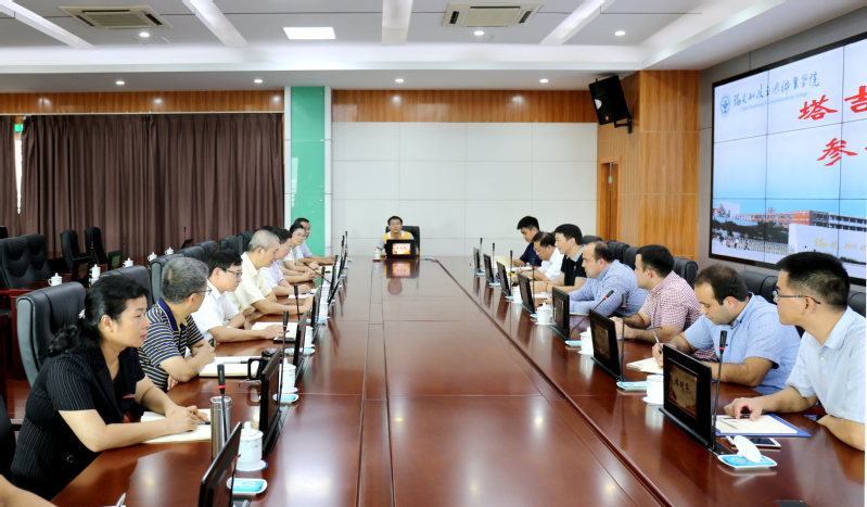 會后,UsmonzodaIbrohim一行參觀了學(xué)院校史館、圖書館機房、遠(yuǎn)程教室、錄播教室以及智慧教室、虛擬演播室、虛擬演播室控制間等。雙方圍繞中塔職業(yè)教育國際合作辦學(xué)、人才培養(yǎng)、師生互訪、科學(xué)研究等進行了交流。