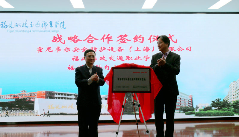 霍尼韋爾安全產(chǎn)品中國(guó)區(qū)副總經(jīng)理胡永鑫、福州派科自動(dòng)化科技有限公司總經(jīng)理陸文欽與安全技術(shù)與環(huán)境工程系系主任鄭雪琴進(jìn)行現(xiàn)場(chǎng)簽約。福建船政交通職業(yè)學(xué)院院長(zhǎng)陳錦輝分別與福州派科自動(dòng)化科技有限公司總經(jīng)理陸文欽、霍尼韋爾安全產(chǎn)品中國(guó)區(qū)副總經(jīng)理胡永鑫舉行了安全防護(hù)裝備捐贈(zèng)儀式與安全防護(hù)裝備校企共建實(shí)訓(xùn)基地揭牌儀式。