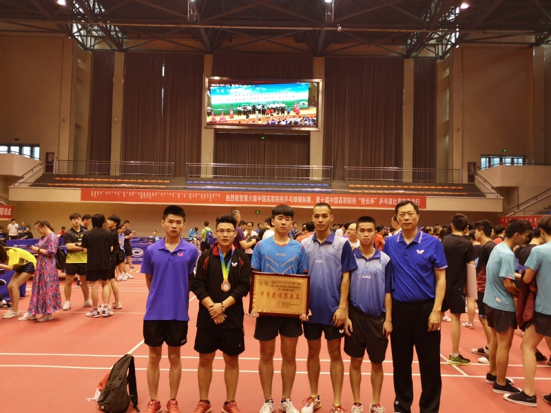 第六屆中國高職院校乒乓球錦標(biāo)賽與2019年7月10日至13日在內(nèi)蒙古烏蘭察布職業(yè)學(xué)院舉行,共有全國33所院校、近180名運動員參賽。比賽過程中教練巧排兵陣、以弱勝強,隊員不畏強手、敢打敢拼,最終獲男子團體賽全國第五名的歷史最好成績;16道路工程監(jiān)理班的魏錦文同學(xué)在學(xué)生男子單打比賽中克服身體不適、頂住壓力,根據(jù)不同對手和教練團隊制定不同戰(zhàn)術(shù)打法,最終獲得男子單打全國第五名的最好成績;潘忠老師也被大會組委會授予本次全國錦標(biāo)賽“優(yōu)秀教練員”稱號。