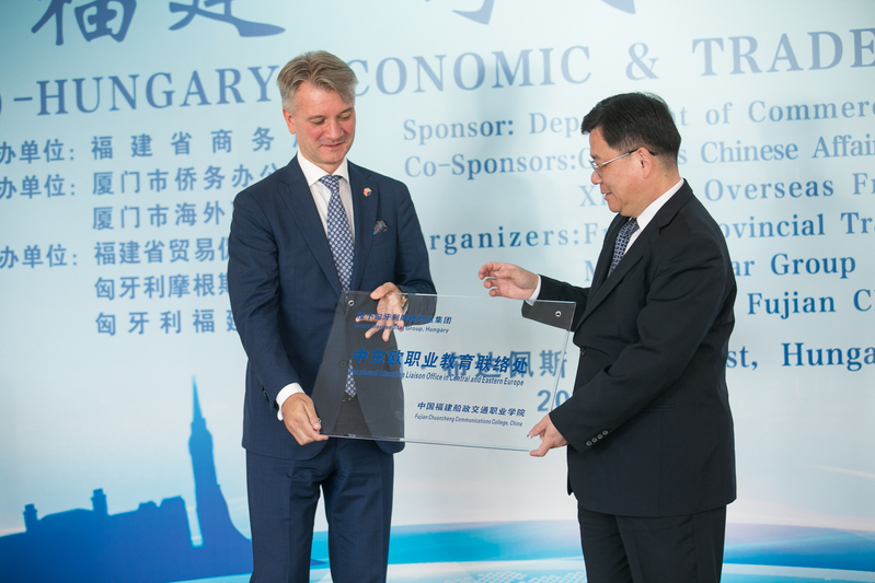受福建船政交通職業(yè)學院委托,吳南翔廳長向匈牙利摩根斯達集團藝術(shù)總監(jiān)ALEX授予“中國福建船政交通職業(yè)學院中東歐職業(yè)教育聯(lián)絡(luò)處”牌匾,學院依托摩根斯達集團在中東歐開展職業(yè)教育合作。吳南翔廳長、何秀珍主任、郭國雄董事長和德布勒森大學校長佐爾坦共同為德布勒森大學、中國福建船政交通職業(yè)學院“通用航空應用技術(shù)研發(fā)中心(匈牙利德布勒森大學基地)”揭牌,搭建起兩校在通用航空領(lǐng)域合作的技術(shù)創(chuàng)新平臺、成果轉(zhuǎn)化基地和科技服務(wù)中心。德布勒森大學校長佐爾坦在接受記者采訪中表示,將充分發(fā)揮德布勒森大學和福建船政交通學院的各自優(yōu)勢,強強聯(lián)合,不僅僅在通用航空領(lǐng)域,要在各個方面全面開展產(chǎn)教研學用合作,共同打造中匈共建“一帶一路”產(chǎn)教研學用融合的典范。