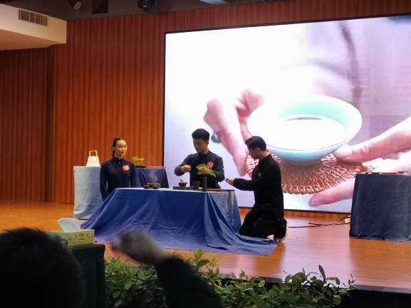中華茶藝賽事分為四個(gè)比賽項(xiàng)目:基礎(chǔ)知識(shí)、規(guī)定茶藝、生活茶藝、創(chuàng)新茶藝。今年我院創(chuàng)新茶藝賽項(xiàng)獲評(píng)委一致好評(píng),認(rèn)為主題立意宏大,演繹完整,選手動(dòng)作嫻熟一致,充分說(shuō)明徐詩(shī)宇、陶煒鵬、林劍鋒三名隊(duì)員平時(shí)訓(xùn)練刻苦、認(rèn)真。在生活茶藝賽項(xiàng)中鄭瑩瑩同學(xué)表現(xiàn)出極高的茶藝知識(shí)素養(yǎng)和沖泡技巧,勇奪第三名。反映指導(dǎo)教師團(tuán)隊(duì)翁國(guó)玲、黃建偉等備賽充分,后勤隊(duì)員保障得力。