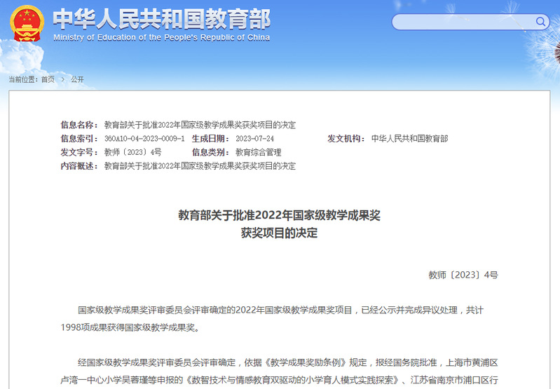 國家級教學(xué)成果獎是我國教育領(lǐng)域政府層面的最高獎勵,旨在獎勵在教育教學(xué)研究中取得顯著成果的集體和個人,鼓勵教育工作者不斷提高教學(xué)水平和教育質(zhì)量。我校再次獲得三項二等獎,充分彰顯了我校堅持以習(xí)近平新時代中國特色社會主義思想為指導(dǎo),落實立德樹人根本任務(wù),以提高人才培養(yǎng)質(zhì)量為核心,不斷深化內(nèi)涵建設(shè)所取得的優(yōu)異成果。