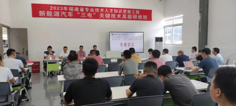 針對我省近年來高速發(fā)展的新能源汽車產(chǎn)業(yè),依托我校在新能源汽車技術(shù)領(lǐng)域辦學(xué)成果的優(yōu)勢,2023年福建省專業(yè)技術(shù)人才知識(shí)更新工程關(guān)于新能源汽車“三電”關(guān)鍵技術(shù)高級(jí)研修班(簡稱“高研班”)于8月3日在我校順利舉行開班儀式。