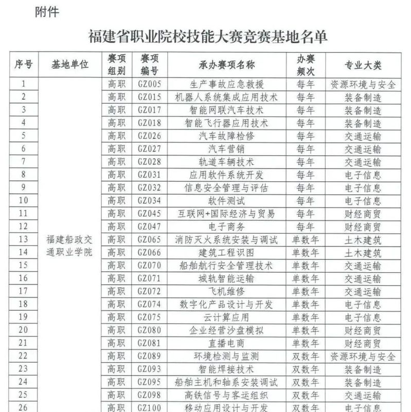 近日,福建省職業(yè)院校技能大賽組委會(huì)公布福建省職業(yè)院校技能大賽競賽基地名單,我院“生產(chǎn)事故應(yīng)急救援”等26個(gè)賽項(xiàng)競賽基地成功獲批,數(shù)量排全省第一。競賽基地是今后3-5年省職業(yè)院校技能大賽賽項(xiàng)固定賽點(diǎn),這是對(duì)我院近年來技能競賽成績及專業(yè)建設(shè)水平的高度肯定,體現(xiàn)了省教育廳和社會(huì)各界對(duì)我院職業(yè)教育成果的認(rèn)可。