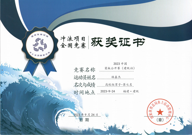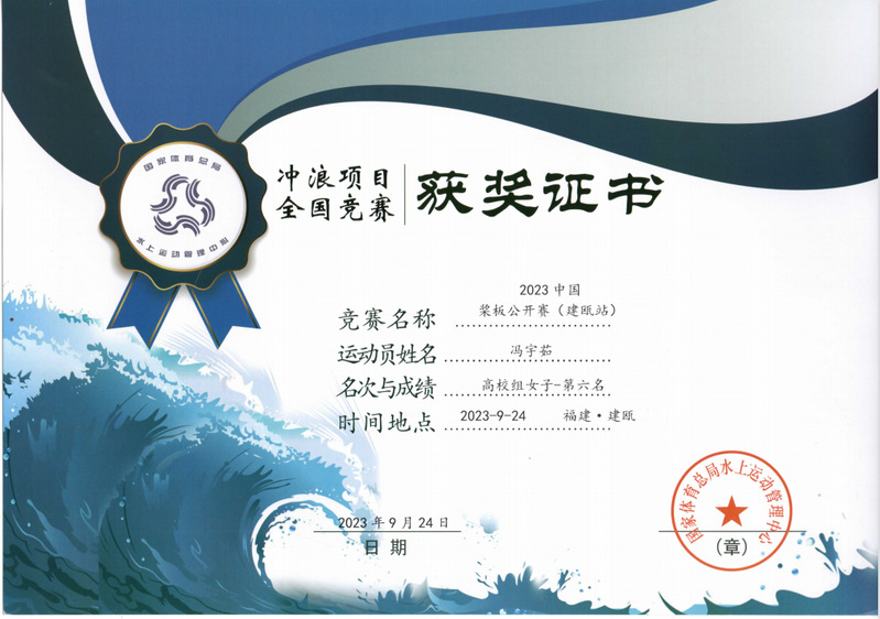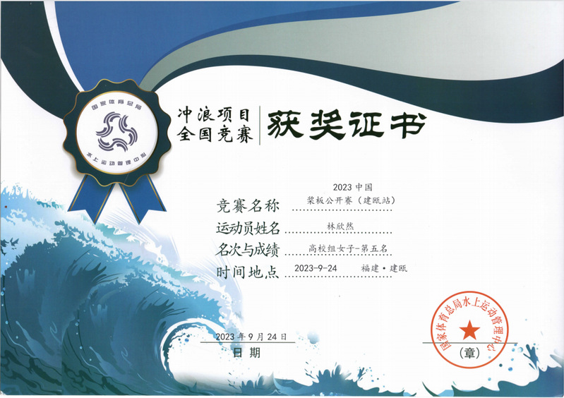 我院槳板隊(duì)運(yùn)動(dòng)員賽前積極備戰(zhàn)訓(xùn)練,比賽中奮勇?tīng)?zhēng)先,劈波斬浪。獲得2023中國(guó)槳板公開(kāi)賽建甌站高校組團(tuán)體總分第一名的好成績(jī);其中高校女子組林欣然、馮宇茹分獲第五名、第六名;高校男子組林晨旭、上官正東、林鑫杰分獲第二名、第四名、第七名。