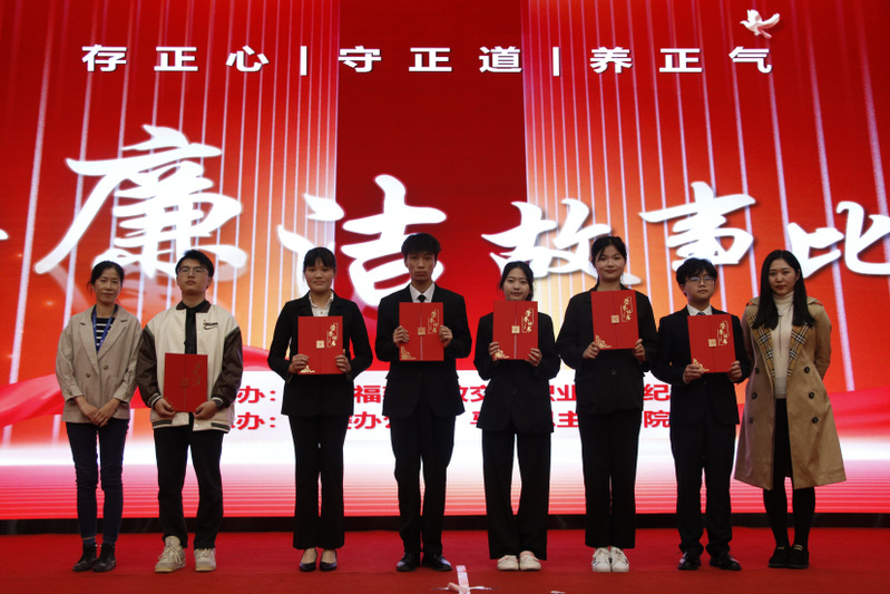 “他是‘立品當如山有岳,持身要比玉無瑕’的清廉官員左宗棠。”“焦裕祿起草‘干部10不準’是對特權思想的批評,是對‘權力任性’的約束。”“廉潔從教,鑄魂育人。三尺講臺,擔起的是育人之責;支支粉筆,書寫的是師者風范?!薄?4位教師演講者先后上臺,圍繞弘揚廉潔精神,講述中國特色的廉潔故事;回溯百年黨史,講述恪守為民的廉潔故事;聚焦船政校史,講述校園廉潔文化建設的故事。他們以自信大方的臺風、聲情并茂的演講、真摯動人的情感贏得現(xiàn)場陣陣掌聲。