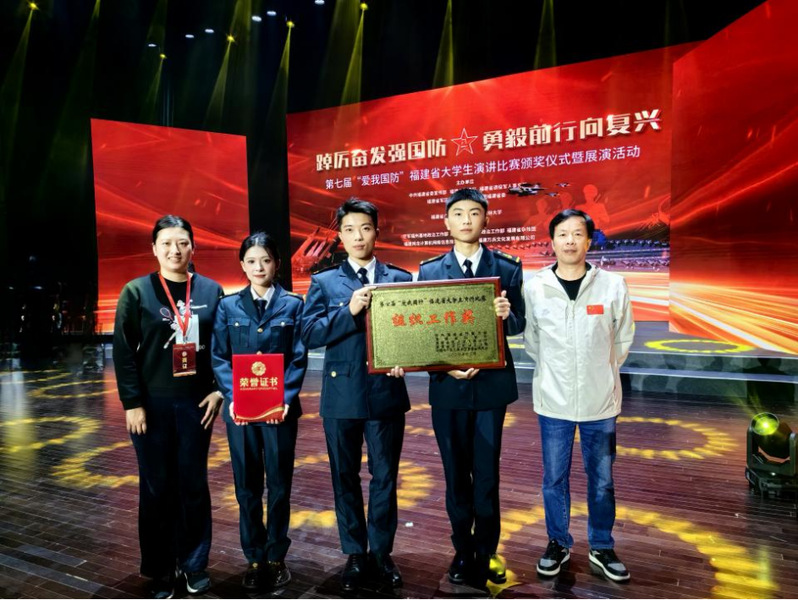 近日,福建省第七屆“愛我國防”大學(xué)生演講比賽在福建農(nóng)林大學(xué)落下帷幕。我院選送的《愛我國防,吾輩當(dāng)自強》作品榮獲大賽優(yōu)勝獎,并作為三個獲獎代表之一在頒獎儀式上進(jìn)行展演。此外,我院還榮獲優(yōu)秀組織獎。