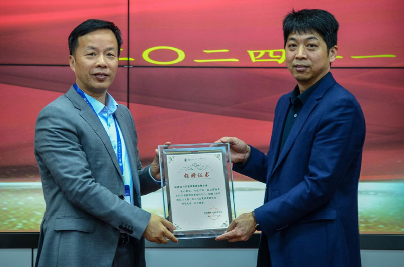 現(xiàn)場,王心金部長向興巖建設(shè)集團頒發(fā)了捐贈證書。