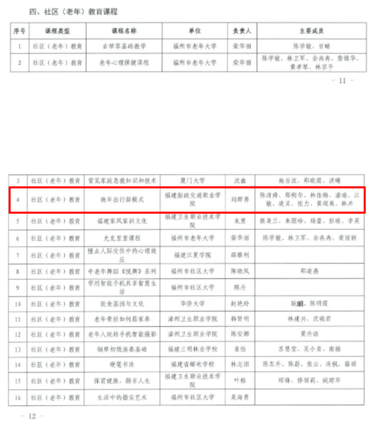 近日,福建省終身教育促進(jìn)委員會(huì)公布《2024年省級(jí)繼續(xù)教育數(shù)字化精品課程》,共認(rèn)定139門課程為2024年省級(jí)繼續(xù)教育數(shù)字化精品課程,其中,學(xué)歷繼續(xù)教育課程37門、非學(xué)歷教育課程41門、職業(yè)技能培訓(xùn)課程22門、社區(qū)(老年)教育課程39門。我院非學(xué)歷教育課程《安全急救與護(hù)理》《新能源汽車高壓系統(tǒng)與安全》《供水管道工培訓(xùn)》、社區(qū)(老年)教育課程《晚年出行新模式》共四門課程成功入選。