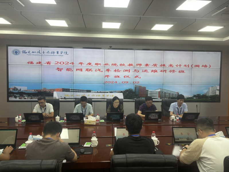 近日,福建省2024年度職業(yè)院校教師素質(zhì)提高計(jì)劃(國(guó)培)·智能網(wǎng)聯(lián)汽車檢測(cè)與運(yùn)維研修班在學(xué)院隆重開(kāi)班。學(xué)院黨委委員、副院長(zhǎng)陳艷紅出席開(kāi)班儀式,培訓(xùn)學(xué)院、科技處、汽車學(xué)院相關(guān)負(fù)責(zé)人及來(lái)自全省中高職院校的31名骨干教師參加。
