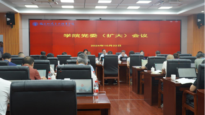 10月22日,學院黨委書記陳宜大主持召開黨委(擴大)會議,傳達學習習近平總書記在福建考察時的重要講話精神、全省領導干部大會精神,研究部署貫徹落實舉措。學院黨委副書記、院長陳錦輝,黨委委員、紀委書記張輝,黨委委員、副院長陳艷紅出席會議,機關各部門負責人、各二級學院黨政負責人參加會議。