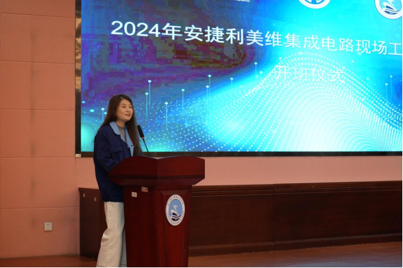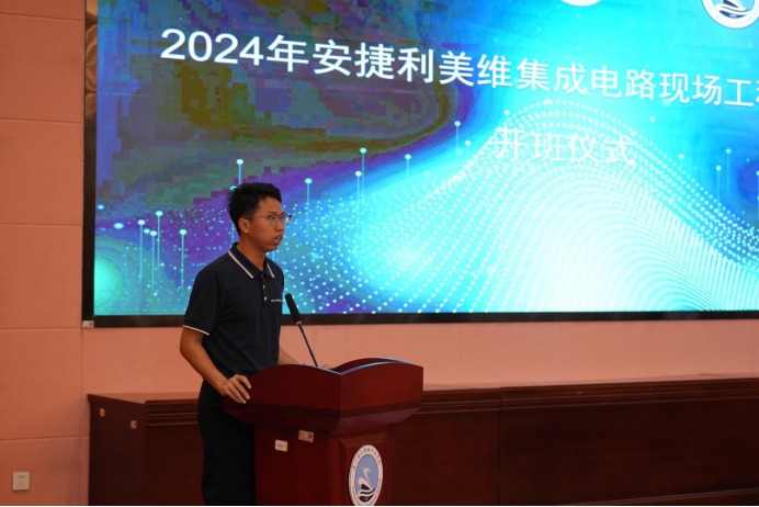 安捷利美維電子(廈門)有限責(zé)任公司人才學(xué)院副院長(zhǎng)季亮感謝學(xué)院支持,對(duì)35名同學(xué)加入首屆安捷利美維班表示歡迎。季亮強(qiáng)調(diào)了合作的重要性,介紹了公司業(yè)務(wù)的全球布局和廣闊前景,以及公司對(duì)人才培養(yǎng)的重視,希望通過(guò)“安捷利美維班”幫助學(xué)生明確職業(yè)方向,為國(guó)家集成電路產(chǎn)業(yè)發(fā)展貢獻(xiàn)力量。