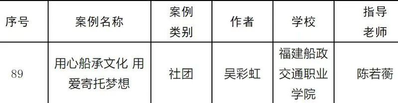 近日,福建省教育廳發(fā)布了《關(guān)于公布新時(shí)代學(xué)校百優(yōu)溫暖集體建設(shè)案例的通知》,我院報(bào)送的《用心船承文化 用愛(ài)寄托夢(mèng)想》成功入選百優(yōu)案例,充分展示了我院在社團(tuán)建設(shè)工作的突出成果和有效實(shí)踐。