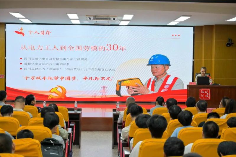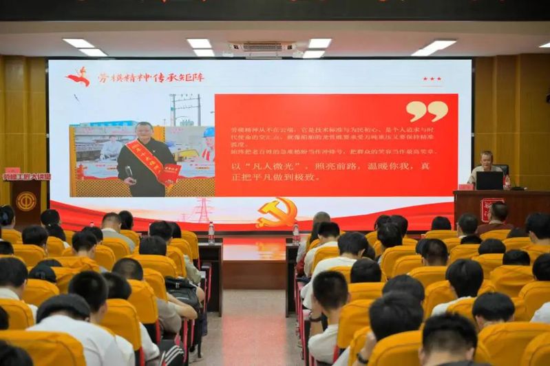 講座中,黃站長以質(zhì)樸語言講述30年電力一線堅守故事:暴雨夜蹚水搶修、臺風(fēng)天獲市民撐傘,從老一輩職工步行交接班的勞動精神啟蒙,到帶領(lǐng)團(tuán)隊攻克“龍王”臺風(fēng)136萬戶搶修難題。他結(jié)合工作室 “四融四帶四庫”體系,分享“刀片環(huán)削法”等創(chuàng)新成果及榜樣傳承力量,詮釋“0.01毫米級”工匠精神的專注與嚴(yán)謹(jǐn)。最后,他以“崗位是時代錨點”勉勵師生,將工匠精神融入日常,在平凡中錨定不凡坐標(biāo),以匠心點亮奮斗之路,為中國制造添磚加瓦。