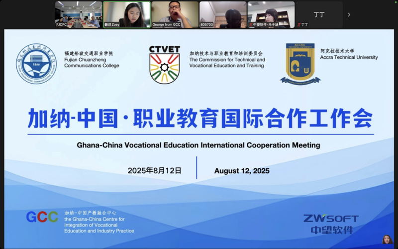 近日,我院與加納阿克拉技術大學召開“職教出?!笔状魏献鞴ぷ鲿h。會議由加納教育部技能課程開發(fā)與評估中心主任Peter Boahin主持,加納-中國產(chǎn)教融合中心主任鄭凱歌、阿克拉技術大學常務校長Engr.Prof. Amevi Acakpovi、學院副院長陳常暉、中望軟件業(yè)務總監(jiān)于敖出席會議,阿克拉技術大學工程學院院長、我院土木工程學院院長、中望軟件相關工作人員及雙方學校教師代表參加了此次會議。
