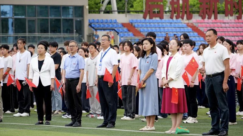 校國旗護(hù)衛(wèi)隊邁著鏗鏘堅定的步伐昂首前行,每一步都飽含赤誠;鮮艷的五星紅旗在朝陽映照下,于師生的肅立注目中冉冉升起、迎風(fēng)展揚。嘹亮國歌回蕩校園,師生目光緊緊追隨著國旗,“青春向黨,強(qiáng)國有我” 的信念,在這莊嚴(yán)時刻深深鐫刻心間。