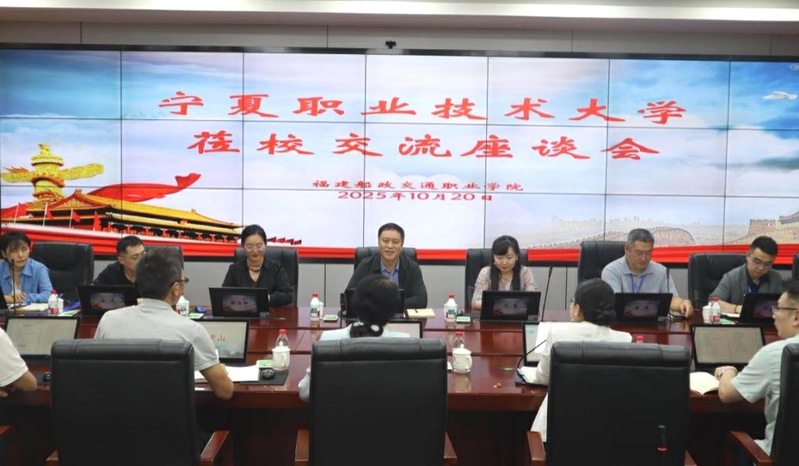 為深入貫徹落實(shí)閩寧教育對(duì)口協(xié)作機(jī)制,不斷拓展兩校合作交流內(nèi)涵,10月20日,寧夏職業(yè)技術(shù)大學(xué)黨委委員、紀(jì)委書記馬建榮率掛職團(tuán)隊(duì)蒞校開展調(diào)研交流。學(xué)院黨委副書記、院長(zhǎng)陳群,紀(jì)委書記謝建山,副院長(zhǎng)陳艷紅出席交流活動(dòng)。寧夏職業(yè)技術(shù)大學(xué)教務(wù)處、組織人事部負(fù)責(zé)同志及11名掛職干部,學(xué)院雙高辦、人事處、教務(wù)處、科技處、數(shù)據(jù)中心、機(jī)械與智能制造學(xué)院、信息與智慧交通學(xué)院、經(jīng)濟(jì)與管理學(xué)院、馬克思主義學(xué)院、教師工作部負(fù)責(zé)同志參加了交流活動(dòng)。