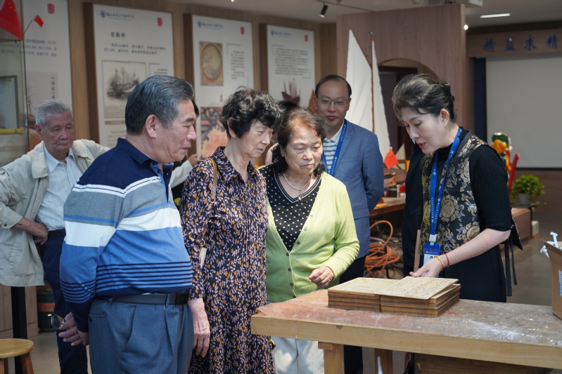 交流結(jié)束后,船政后裔一行參觀了學(xué)院校史館,在一幅幅珍貴的歷史圖片、一件件實(shí)物展品前,駐足聆聽講解,重溫先輩們投身船政事業(yè)的崢嶸歲月,感受學(xué)院百年辦學(xué)的深厚底蘊(yùn),并現(xiàn)場提供了自己撰寫的船政先賢事跡手稿。他們紛紛表示愿意通過捐贈、復(fù)制等方式,向我院校史館提供更多先人前輩的物件等紀(jì)念品。