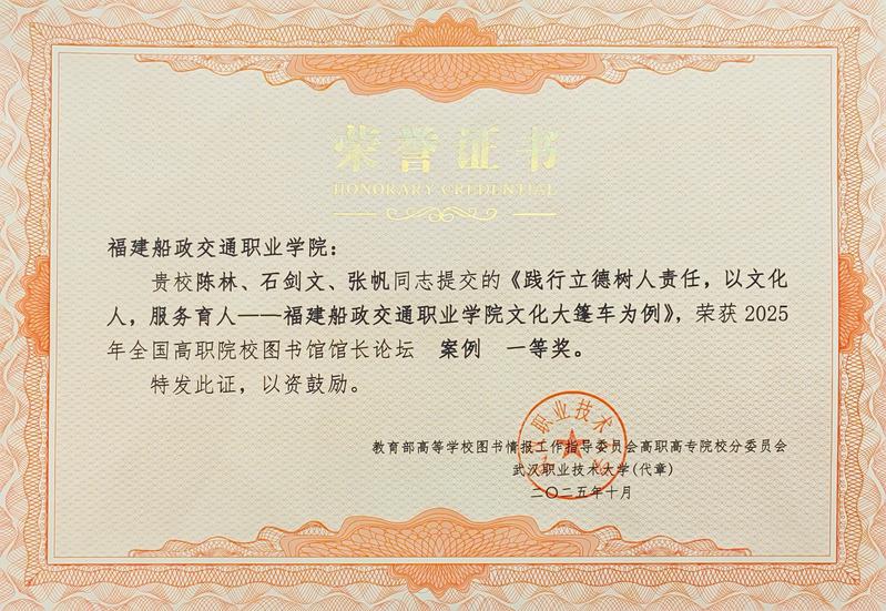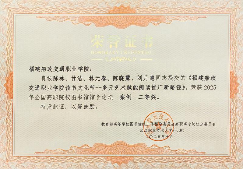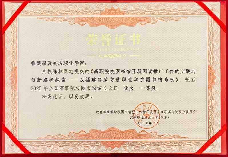 近日,2025年全國高職院校圖書館館長論壇在貴陽舉行。我院圖書館報(bào)送的案例《踐行立德樹人責(zé)任,以文化人,服務(wù)育人》獲評案例類一等獎(jiǎng);案例《多元藝術(shù)賦能閱讀推廣新路徑》獲評案例類二等獎(jiǎng);論文《高職院校圖書館開展閱讀推廣工作的實(shí)踐與創(chuàng)新路徑探索》榮獲論文類一等獎(jiǎng)。