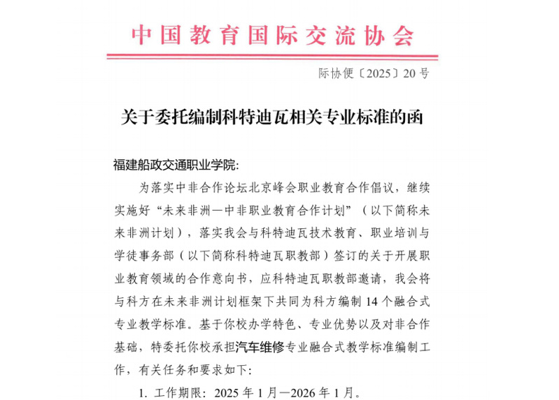 此次入選是學(xué)院多年來(lái)深耕非洲開(kāi)展“職教出海”取得的豐碩成果,也彰顯了學(xué)院教隨產(chǎn)出,隨企出海,校企攜手“走出去”、服務(wù)“一帶一路”倡議、深化中非職業(yè)教育合作的顯著成效。未來(lái),學(xué)院將持續(xù)拓展中非職業(yè)教育合作領(lǐng)域,厚植中非職業(yè)教育合作友誼,不斷提升對(duì)外開(kāi)放和國(guó)際化發(fā)展水平。