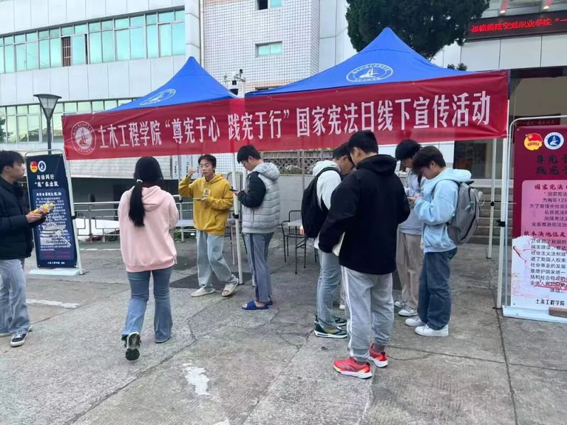 學院積極拓展宣傳教育渠道,推動憲法學習從課堂走向生活、從文本走向?qū)嵺`。土木工程學院走進福航園學生社區(qū),開展“尊憲于心,踐憲于行”主題宣傳活動,志愿者結(jié)合學生生活實際,系統(tǒng)解讀憲法中關于公民權利保障的核心條款,引導同學們理解如何運用法律武器維護自身合法權益,樹立“尊重知識、保護創(chuàng)新”的法治觀念。此外,學院還常態(tài)化舉辦法律咨詢沙龍,為師生提供面對面的法律咨詢服務,將普法教育融入日常。