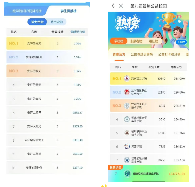 截至11月25日,全校 1.08 萬名同學(xué)全員參與,累計(jì)匯聚青春活力值達(dá)140萬,穩(wěn)穩(wěn)站上全國(guó)高校熱榜前列。這場(chǎng)跨越校園的愛心接力,不僅續(xù)寫了船政公益的優(yōu)異答卷,更讓每一位學(xué)子懂得,青春的意義,在于把自己的光和熱,傳遞給需要溫暖的角落。