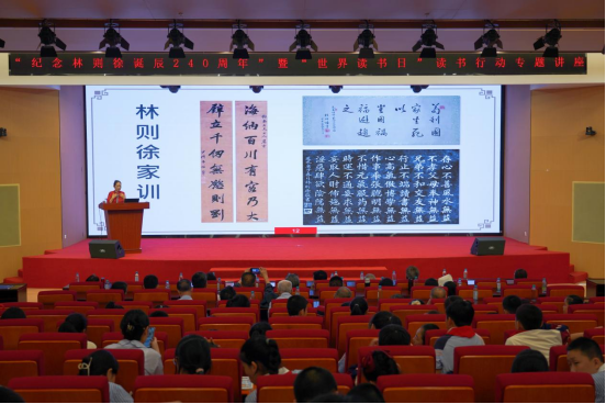 4月19日,主辦方還舉辦了公益講座為讀書行動(dòng)預(yù)熱。馬尾船政文化研究會(huì)會(huì)長、福建師范大學(xué)碩士生導(dǎo)師陳悅作《林則徐與福建船政》、林則徐第六代后裔林祝光先生以家族視角分享《林則徐家風(fēng)家訓(xùn)》。講座吸引了船政后裔和福州市林則徐小學(xué)等7所學(xué)校280余名師生代表。