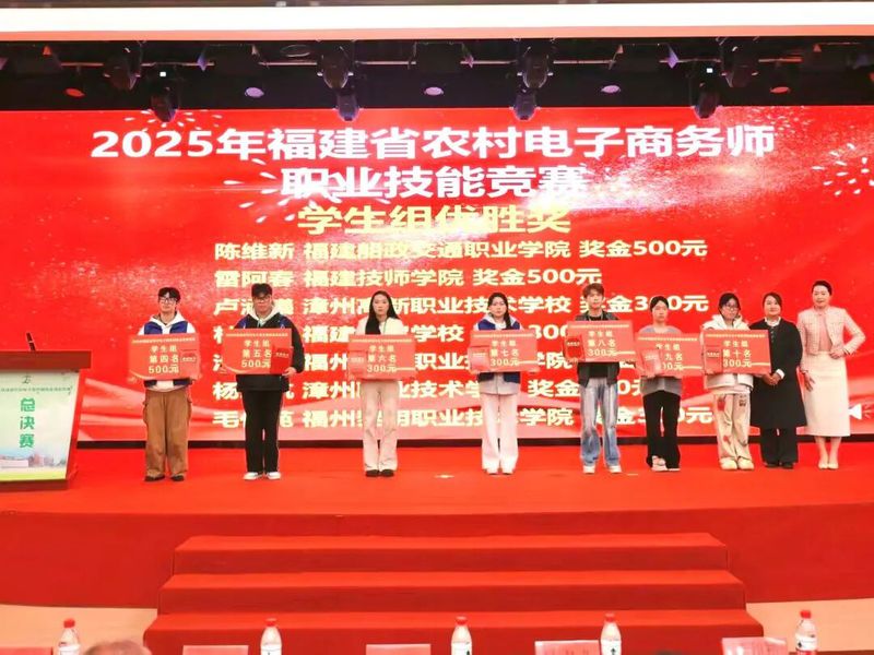 近日,由福建省商務(wù)廳、福建省人力資源和社會保障廳、福建省教育廳、福建省總工會、共青團福建省委聯(lián)合主辦,福建船政交通職業(yè)學(xué)院承辦的2025年福建省農(nóng)村電子商務(wù)師職業(yè)技能競賽圓滿落幕。學(xué)院憑借周密的組織安排與高效的賽事服務(wù),保障了競賽全程嚴(yán)謹(jǐn)有序、公平公正,獲得主辦單位及各參賽隊伍的高度認(rèn)可。我院選派師生在比賽中表現(xiàn)突出,方思老師榮獲大賽第一名(金獎),黃鈺淇老師與學(xué)生陳偉鑫均獲得優(yōu)勝獎,實現(xiàn)了賽事承辦與競賽成績的雙重豐收。
