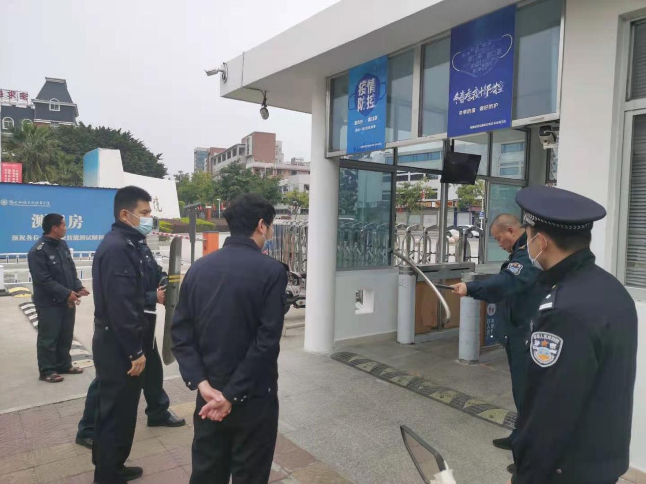 倉(cāng)山公安分局巡特警大隊(duì)實(shí)地察看了學(xué)校保安室、門衛(wèi)室、視頻監(jiān)控室等重點(diǎn)部門,了解我校反恐防范措施落實(shí)情況,高度評(píng)價(jià)了我校反恐工作,并就落實(shí)好反恐怖主體責(zé)任提出了明確要求。