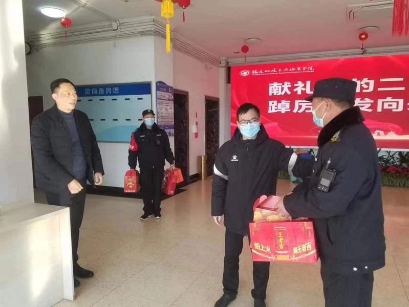 2023年1月19日上午,時值癸卯新年來臨之際,學院黨委副書記陳宜大攜安全保衛(wèi)處處長潘忠代表學校黨政,深入走訪慰問了寒假期間堅守崗位的一線工作人員,向他們的辛勤工作表示充分肯定,并送上新春的問候和祝福。