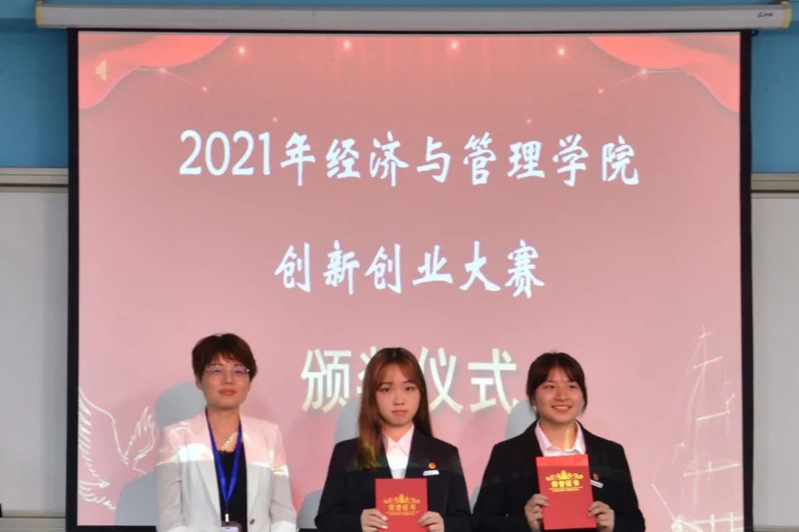 經(jīng)濟與管理學院黨總支副書記林麗萍、副院長吳吉明、團委書記傅一丹對本次大賽的獲獎隊伍進行頒獎。