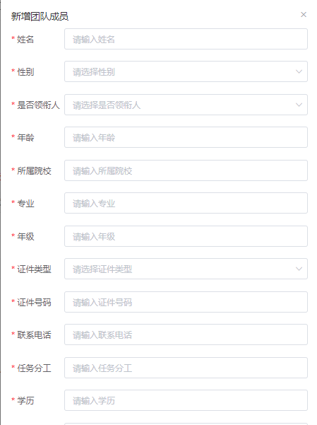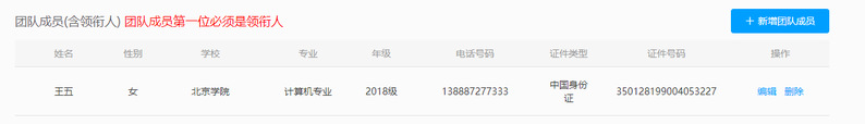 (2)填寫團(tuán)隊成員(團(tuán)隊成員第一位必須是領(lǐng)銜人),點(diǎn)擊右上角“+新增團(tuán)隊成員”