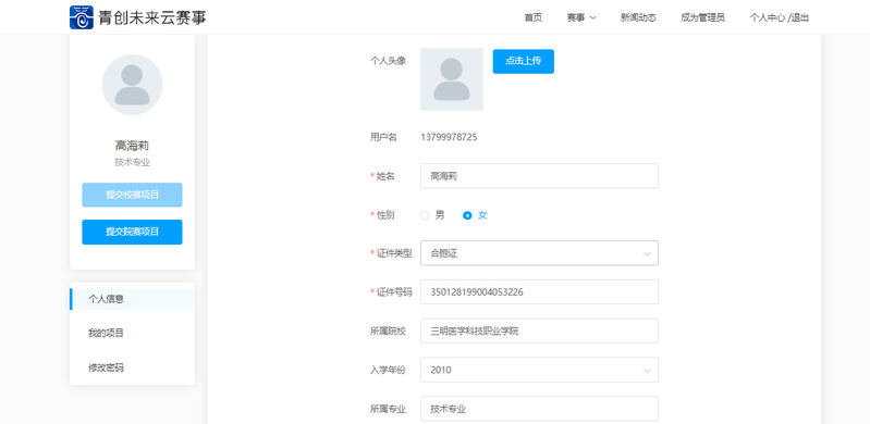 三步:登錄成功,進(jìn)入大賽平臺“個人資料”主頁。