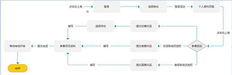 (1)省賽階段:學(xué)校管理員為具備參賽資格的項目團(tuán)隊領(lǐng)銜人進(jìn)行授權(quán),參賽項目團(tuán)隊界面將出現(xiàn)省賽項目提交按鈕,如“提交省賽項目”,項目團(tuán)隊領(lǐng)銜人點(diǎn)擊按鈕后開始創(chuàng)建項目。