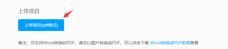 4)點(diǎn)擊“上傳項目(PDF格式)”,(備注:僅支持Word轉(zhuǎn)換的PDF,請勿以圖片轉(zhuǎn)換成PDF,可以點(diǎn)擊下載Word轉(zhuǎn)換成PDF教程查看),上傳項目。