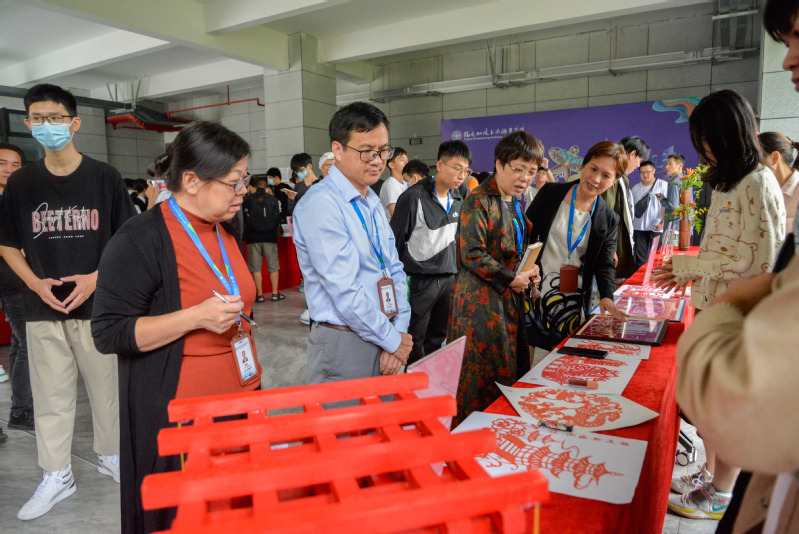 為進(jìn)一步激發(fā)師生對(duì)非物質(zhì)文化遺產(chǎn)的了解熱愛(ài),不斷增強(qiáng)文化自信,推動(dòng)師生對(duì)非遺傳統(tǒng)技藝傳承和創(chuàng)造創(chuàng)新。2021年10月20日下午創(chuàng)新創(chuàng)業(yè)學(xué)院在南區(qū)實(shí)訓(xùn)中心一樓中庭隆重舉辦第三屆“黃炎培”杯非遺創(chuàng)新作品選拔賽。學(xué)院黨委副書記陳宜大、宣傳統(tǒng)戰(zhàn)部部長(zhǎng)謝翠紅,科技處處長(zhǎng)李斌,團(tuán)委書記陳慧、學(xué)工部就業(yè)辦主任劉磊以及各二級(jí)學(xué)院黨政領(lǐng)導(dǎo)出席了此次選拔賽。