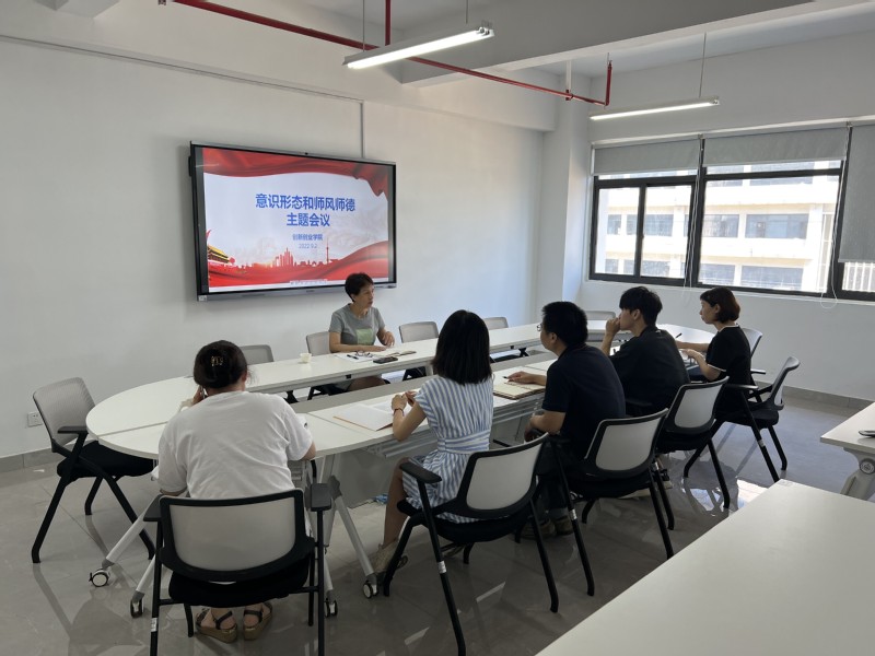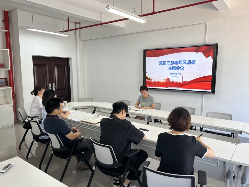 為進一步加強師德師風(fēng)建設(shè),增強教職工意識形態(tài)工作的緊迫感和使命感,營造風(fēng)清氣正的育人環(huán)境和良好的輿論氛圍,2022年9月2日上午,創(chuàng)新創(chuàng)業(yè)學(xué)院組織全院教職工召開師德師風(fēng)建設(shè)與意識形態(tài)工作專題會議,分析研判學(xué)院意識形態(tài)工作和教師思想政治工作,提出加強師德師風(fēng)建設(shè)和意識形態(tài)工作的重要性和必要性。會議由學(xué)院院長林霞主持。學(xué)院副院長王登清、學(xué)院全體教職工參加會議。