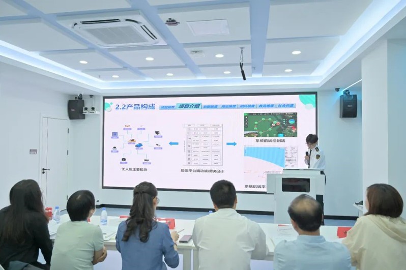 而后在進行現(xiàn)場答辯環(huán)節(jié)時,亦可感受到團隊之間配合的默契。在限時的答辯過程中,選手們將各自項目產品呈現(xiàn)在評委面前,面對評委老師們提出的問題都可以對答如流。