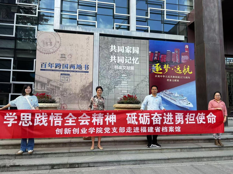 為深入學(xué)習(xí)貫徹黨的二十屆三中全會精神,在新征程上不斷汲取中國共產(chǎn)黨人榜樣的精神力量,堅定理想信念砥礪前行,11月5日,創(chuàng)新創(chuàng)業(yè)學(xué)院黨支部組織全體黨員赴福建省檔案館開展“學(xué)思踐悟全會精神,砥礪奮進(jìn)勇?lián)姑?/span>”主題黨日活動。