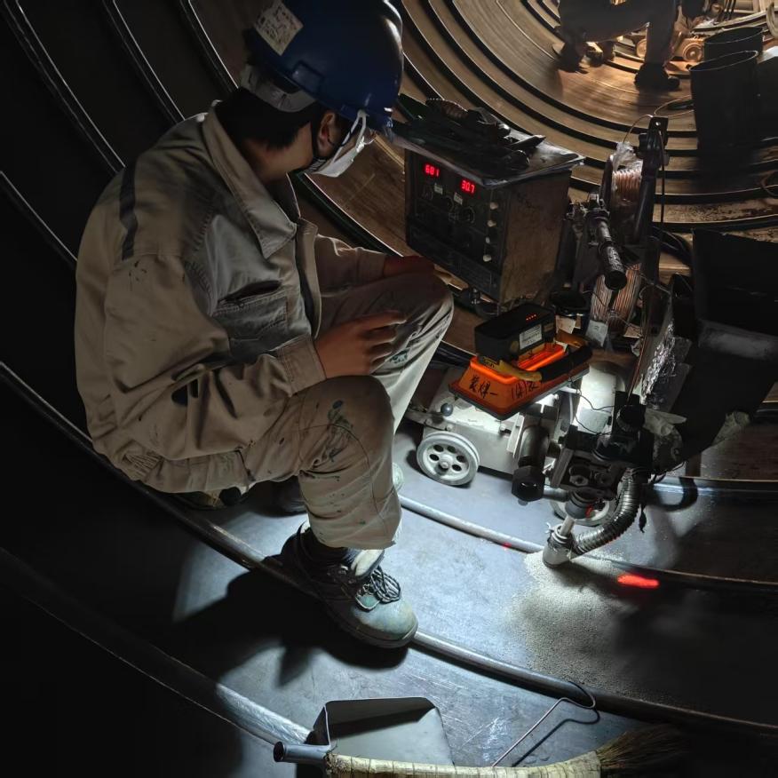 實習(xí)初期:23年10月,我進(jìn)入福船一帆實習(xí),我感受到了前所未有的挑戰(zhàn)。進(jìn)入一帆,我最先接觸到的是LNG儲罐項目,這和我在大學(xué)所學(xué)的船舶知識差異顯著,相當(dāng)于一個全新的開始。但當(dāng)割刀切割鋼板時迸發(fā)的絢麗的火花讓我瞬間愛上了這份工作。