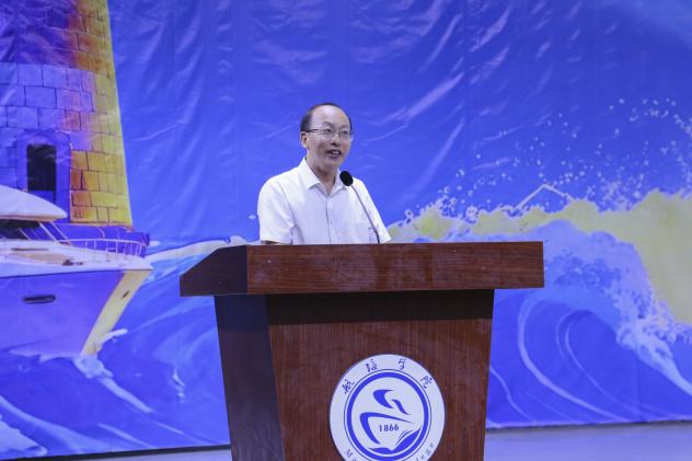 院長(zhǎng)李翼登臺(tái),以厚重而充滿期許的致辭,為新生上了“大學(xué)第一課”。他回顧了學(xué)院秉承“精益求精、密益求密”的船政精神所取得的輝煌成就,并聚焦“海洋強(qiáng)國(guó)”戰(zhàn)略,對(duì)同學(xué)們新學(xué)年的成長(zhǎng)與發(fā)展寄予厚望。他鼓勵(lì)大家不僅要深耕專(zhuān)業(yè)、錘煉技能,成為未來(lái)的大國(guó)工匠;更要勇于探索,在豐富的校園生活中鍛造全面的人格,將個(gè)人理想融入國(guó)家發(fā)展的藍(lán)色航道。