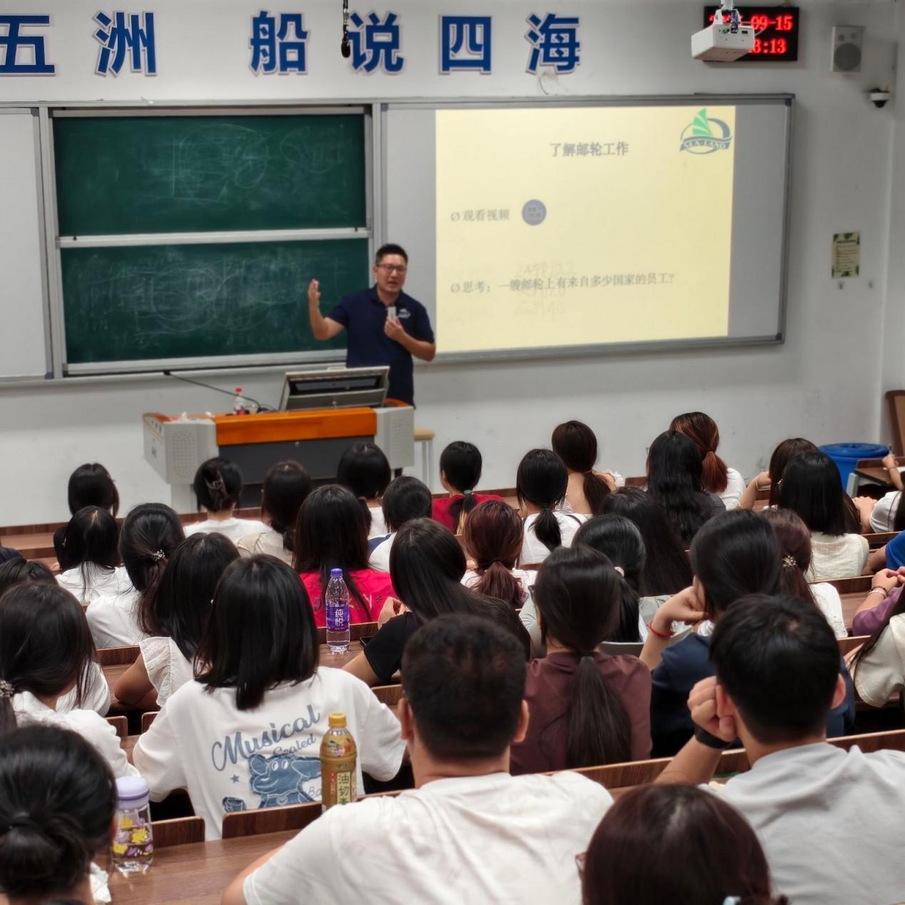 隨后,廈門海陸海事服務(wù)有限公司李樂天經(jīng)理結(jié)合多年行業(yè)經(jīng)驗,深入剖析了國際郵輪產(chǎn)業(yè)的發(fā)展趨勢與人才需求。他指出,隨著全球郵輪旅游市場的復(fù)蘇與擴張,具備國際化視野、跨文化溝通能力和扎實服務(wù)技能的乘務(wù)人才備受青睞。李經(jīng)理以本校2015級優(yōu)秀畢業(yè)生陳麗娜(現(xiàn)任職于歌詩達郵輪)為例,鼓勵新生珍惜在校時光,夯實語言、禮儀與應(yīng)急處理能力,積極考取國際認證證書,為未來登上世界知名郵輪公司奠定堅實基礎(chǔ)。