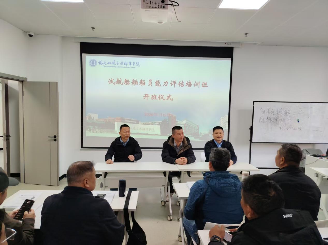 為推動(dòng)福建轄區(qū)海船試航船員能力評(píng)估工作走向規(guī)范化、標(biāo)準(zhǔn)化,切實(shí)提升試航船舶航行安全水平,福建船政交通職業(yè)學(xué)院航海學(xué)院承辦籌備的首期“海船試航船舶船員能力評(píng)估培訓(xùn)班”,于2026年1月12日在福州正式開班。56名來(lái)自福州、寧德轄區(qū)航運(yùn)一線的船長(zhǎng)、大副、輪機(jī)長(zhǎng)等骨干船員齊聚一堂,開啟專業(yè)淬煉之旅,福建首批“試航安全官”培育工作正式啟動(dòng)。