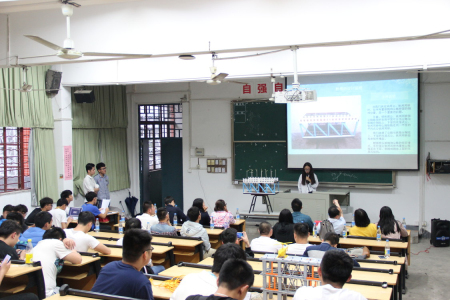 4月26日下午,由道路工程團(tuán)委學(xué)生會舉辦的“世界夢交匯的橋梁2017橋模大賽”于8#第一階梯教室舉行。本次大賽分為“展示”、“演講”、“答辯”三個環(huán)節(jié),要求選手利用一些廢棄材料來制作模型,并針對模型的構(gòu)思、制作過程、設(shè)計說明、設(shè)計方案方面等進(jìn)行簡要陳述。我系各班學(xué)生選送了包括古橋、近現(xiàn)代橋、創(chuàng)意橋等三大類,共25組橋梁模型參與角逐。