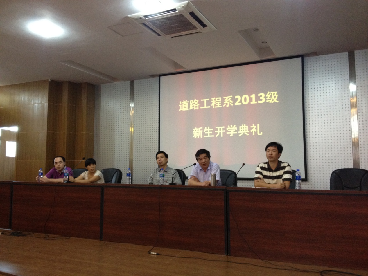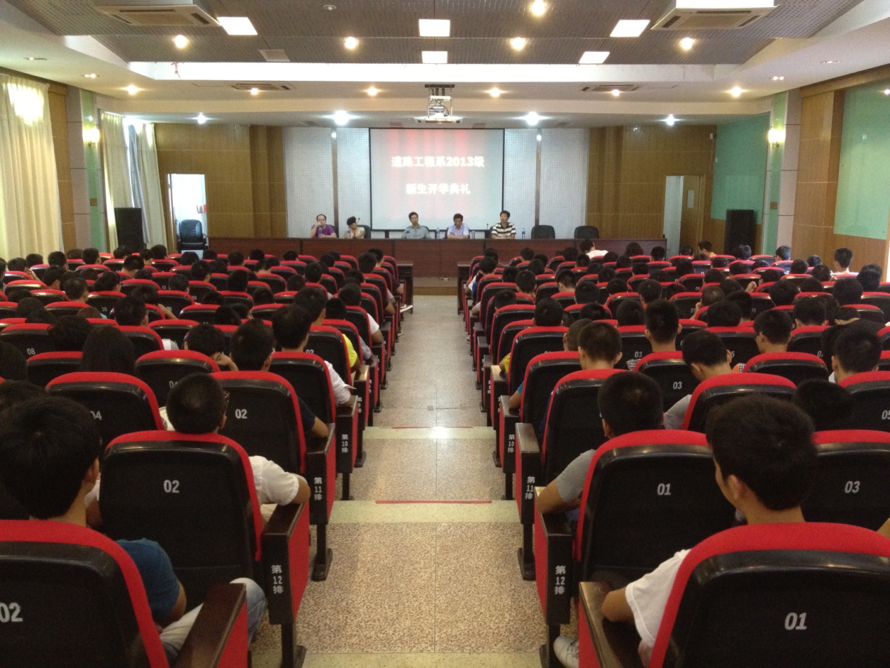 2013年9月12日下午4:30,道路工程系2013級新生開學(xué)典禮在一號樓六樓學(xué)術(shù)報告廳召開。道路工程系書記王心金、系主任周志堅(jiān)、俞素平副教授、陳勇鋒老師、陳艷瓊老師、全體輔導(dǎo)員以及300多名學(xué)生參加了會議。