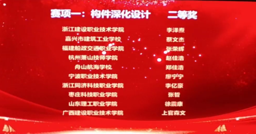 我校土木工程學(xué)院20級建筑工程技術(shù)專業(yè)張榮輝、葉紹龍兩位同學(xué)晉級本項賽事的決賽階段。在建筑工程技術(shù)專業(yè)教研室王喆、高巧玲等教師團隊的指導(dǎo)下,在深化設(shè)計賽項和構(gòu)件制作與安裝賽項中均榮獲全國二等獎,其中構(gòu)件制作與安裝賽項還取得本次福建省參賽院校的最好成績。