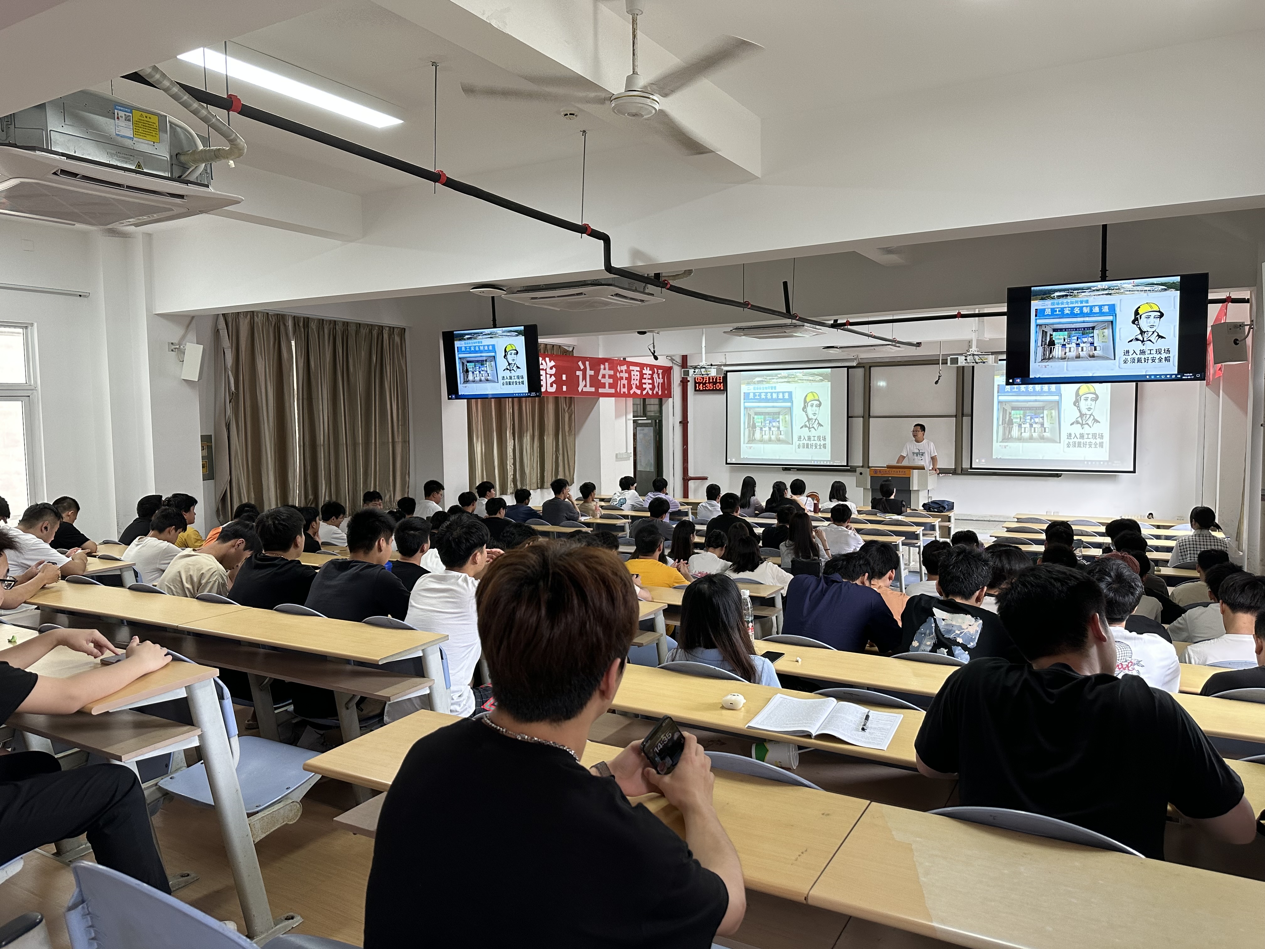 謝仁波圍繞“建筑施工的特點(diǎn)”、“現(xiàn)場(chǎng)安全如何管理”、“標(biāo)化工地的創(chuàng)建”、“通過(guò)創(chuàng)優(yōu)工程快速提升自己”、 “工地萊鳥(niǎo)如何成長(zhǎng)”等問(wèn)題進(jìn)行深刻闡釋。謝仁波以過(guò)來(lái)人的身份向?qū)W弟學(xué)妹們介紹了他個(gè)人工作履歷,分享了工作后的部分參建項(xiàng)目案例,再結(jié)合上述內(nèi)容,對(duì)學(xué)生在校期間生活學(xué)習(xí)、工作后各方面給予建議,最后與學(xué)生進(jìn)行互動(dòng)溝通。