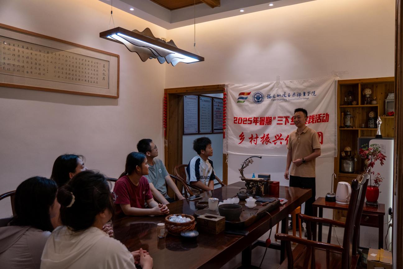 實踐期間,實踐團有幸迎來了一位以實干助力鄉(xiāng)村振興的優(yōu)秀校友——鄭永琪。作為福建省2024屆選調生,他于2024年7月主動投身基層,來到連城縣朋口鎮(zhèn)朋城村擔任黨支部書記助理。這片兼具地理優(yōu)勢與產業(yè)活力的土地,正需要年輕力量的注入:這里是205國道與319國道交匯處,毗鄰冠豸山南動車站,蘭花產業(yè)形成“黨建+合作社+農戶”的全產業(yè)鏈,家具產業(yè)憑借豐富林竹資源聚集成群,還有多家名優(yōu)企業(yè)帶動就業(yè)與稅收。