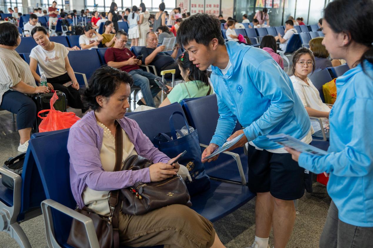 圖4:宣講團(tuán)在長汀南汽車站為乘客講解禁毒反詐知識